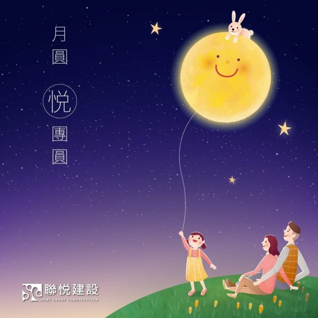 聯悦建設 祝您秋節愉快,月圓人團圓 「玉兔真的住在月亮上面嗎?」 一輪明月高掛夜空 孩子手上拿著月餅 天真地問…